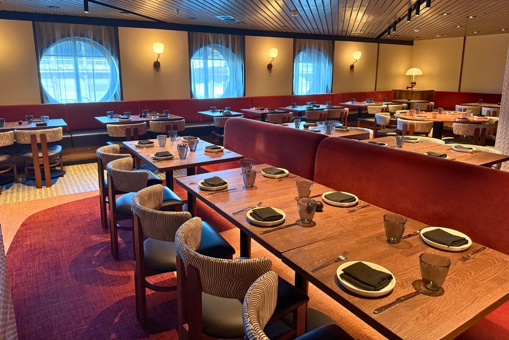 This is the first space you notice when you step onboard and it feels different right away. The Roundabout is less of a “pass through” and more of a hangout now. It’s cozier, almost like a chic lounge, with spots where you actually want to sit.
